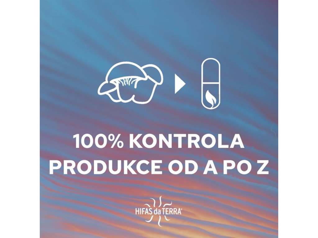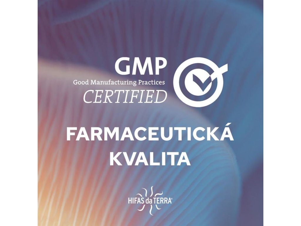 - 360° dohledatelnost - každou složku v produktech Hifas da Terra lze dohledat doslova ze všech stran, proto 360°. Přísně kontrolovaná produkce od pěstování, přes kultivační procesy až po uvedení na trh podléhají farmaceutickému standardu kvality GMP (Good Manufacturing Practice).