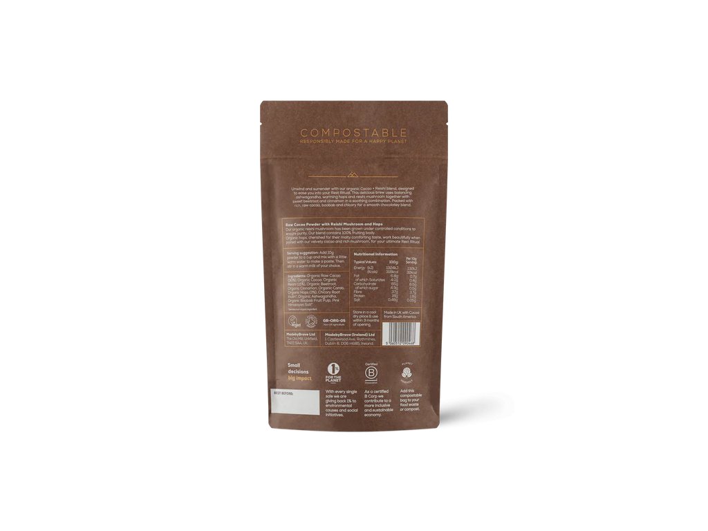Naše sofistikovaná směs bohatá na bioaktivní antioxidační a adaptogenní látky má výraznou kakaovo-karobovou chuť a je přeplněná živinami včetně adaptogenního "krále hub" Reishi a jemně sladkého syrového kakaa s vysokým obsahem theobrominu.