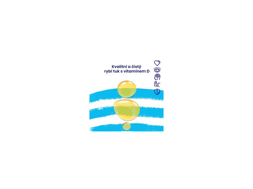 - Obsah: 450 mg DHA, 380 mg EPA, 10 µg vitamínu D.