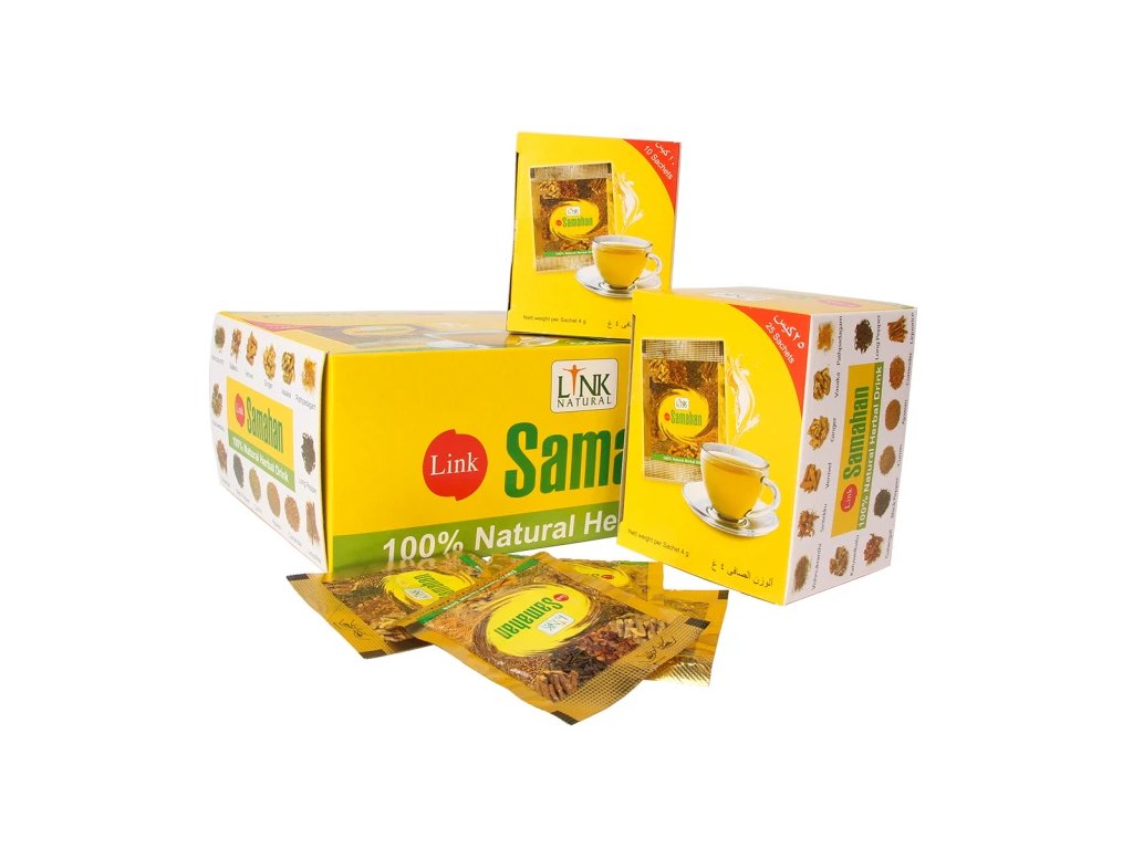 Samahan je koncentrovaný ájurvédský horký bylinný nápoj v jednorázových sáčcích. Pochází ze Srí Lanky, kde podobné směsi patří mezi tradiční receptury známé jako „Peyava“. Díky kombinaci bylin a koření je Samahan oblíbený hlavně v chladných dnech, na cestách nebo po pobytu venku, když oceníte příjemné prohřátí.